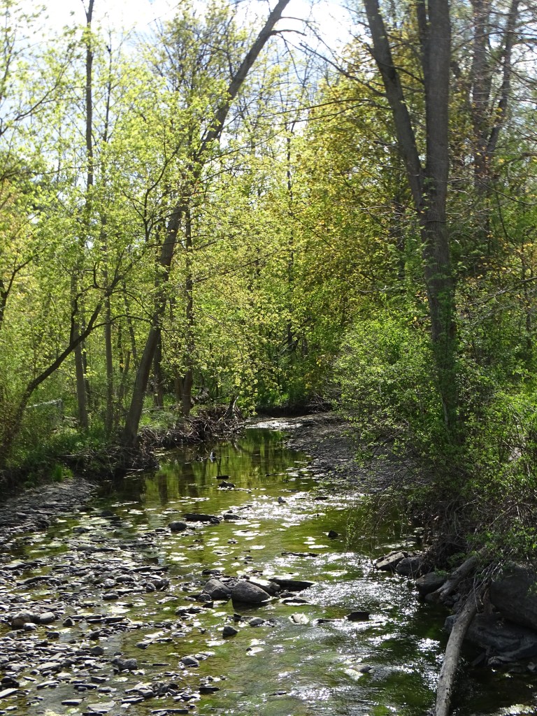 And, yet, so much had changed. The woods along the trail were dense and I could no longer easily glimpse the birds whose song filled the air. The creek had loosened itself from winter’s grip and where once ice cracked and shifted, water trickled and pooled over and around rocks.